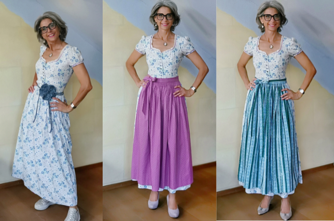 Mit einer feinen Strickjacke, einem Janker oder einer kurzen Trachtenjacke lässt sich der Look weiter variieren. Auch Tücher, Schmuck oder ein kleiner Trachtenhut setzen schöne Akzente und machen das Outfit individuell.